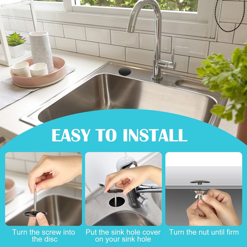 - Easy to Install: Put the sink hole cover over the faucet hole, then tighten the wing nut under the sink. The 2" long threaded shank makes it easy to screw into place. Easy installation without tools and without calling a plumber.