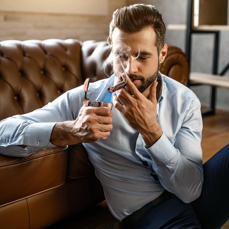 Powerful 4 Flame JetThis rocker lighter has a powerful four-fire direct impact function, which can light your cigar and tobacco in an instant. When you press the rocker arm, all four flames will shine at once, creating a powerful wall of flame that shoots straight up. Four flames can ignite more surface area at once, providing a more powerful and stable flame. Whether you want to light a candle in the wind or start a fire in the wild, this lighter is your perfect choice.