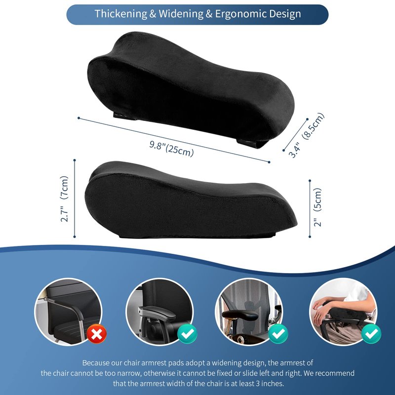 XIFUUXI Chair Armrest Pads, Widen & Thicken Ergonomic Chair Arm Pads with Memory Foam for Office Chairs, Gaming Chair - for Elbows and Forearms Pressure Relief (2 Pack)