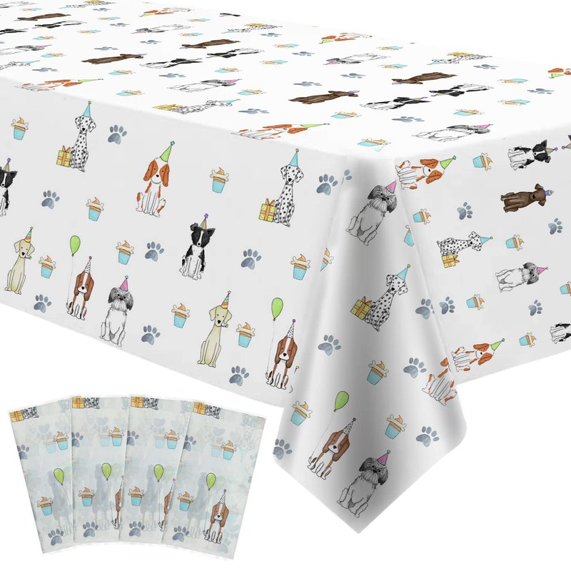 - 【Package Size】You will receive 4 pieces of dog print tablecloth the size of each puppy dog party table cover is 108 x 54 inches and fits 8 feet-long tables that can accommodate 8-10 people, suitable for puppy birthday party supplies