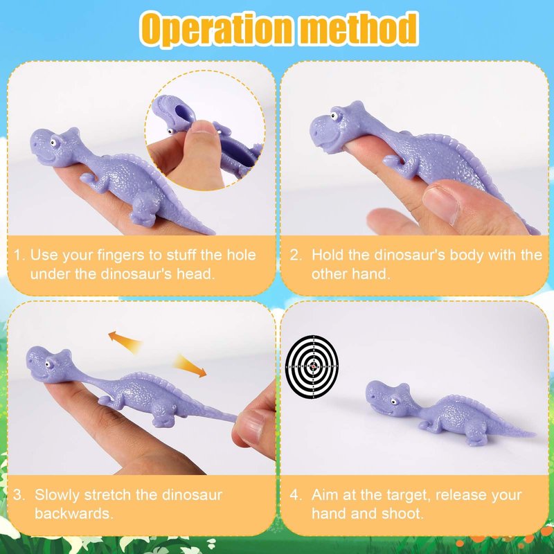 - Easy To Use: Our animal toys are easy to play. Just put your finger into the hole under the dinosaur's head, pull its tail with the other hand, then aim and shoot. This finger catapult has long catapult range and is suitable for indoor and outdoor competitions.