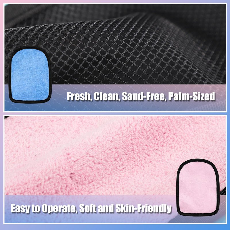 - Quality Material: Our sand wipes are made of premium towel cloth and the back has net cloth, that can be worn on your hand easily. Tear-resistant, soft, comfortable to touch, and reusable, serving you for a long time.