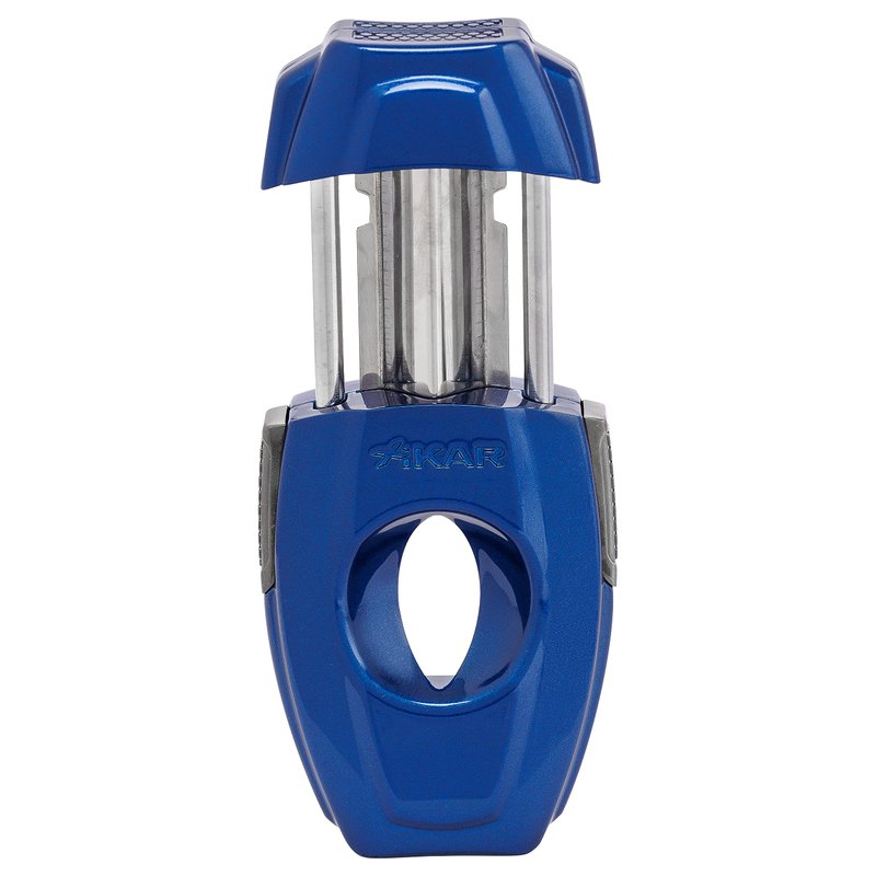 Xikar VX2 V-Cut Cigar Cutter, Up to 70 Ring Gauge, Built-in 64RG Bowl, Stainless Steel Blades, Attractive Gift Box, Ergonomic Design, Secure-Lock, Spring-Loaded, Blue