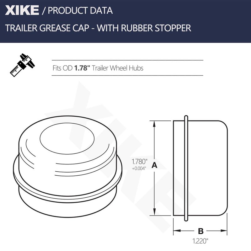 XiKe 2 Set 1.78" OD Trailer Bearings Dust Cap Grease Cap, Fits 3/4" Trailer Wheel Hub Axles.