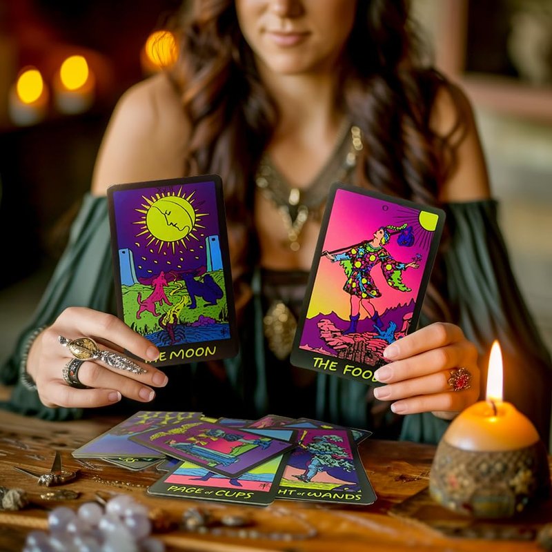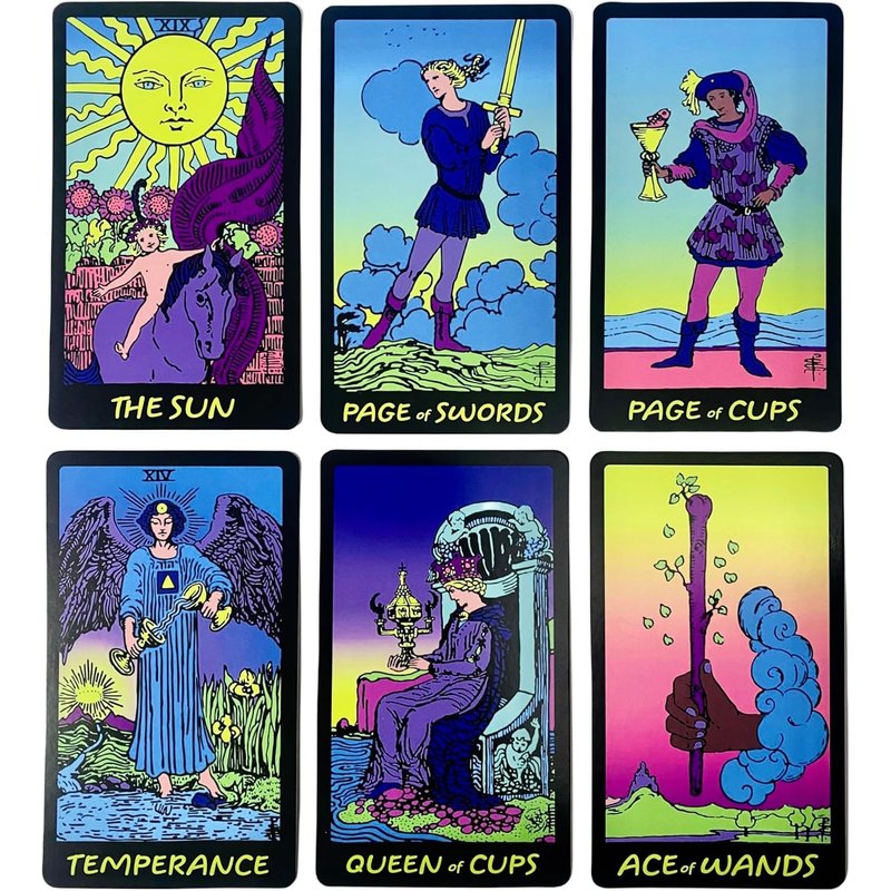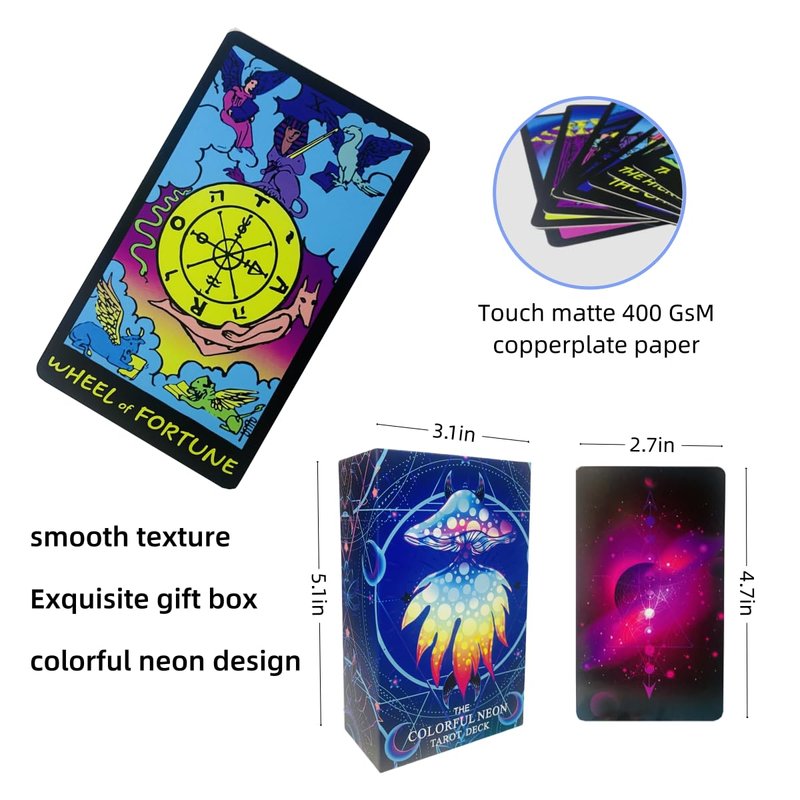 XIMIGEYEFU 78 Original Designs neon Colors Tarot Cards ,Tarot Cards for Beginners,Tarot Cards with Meanings on Them