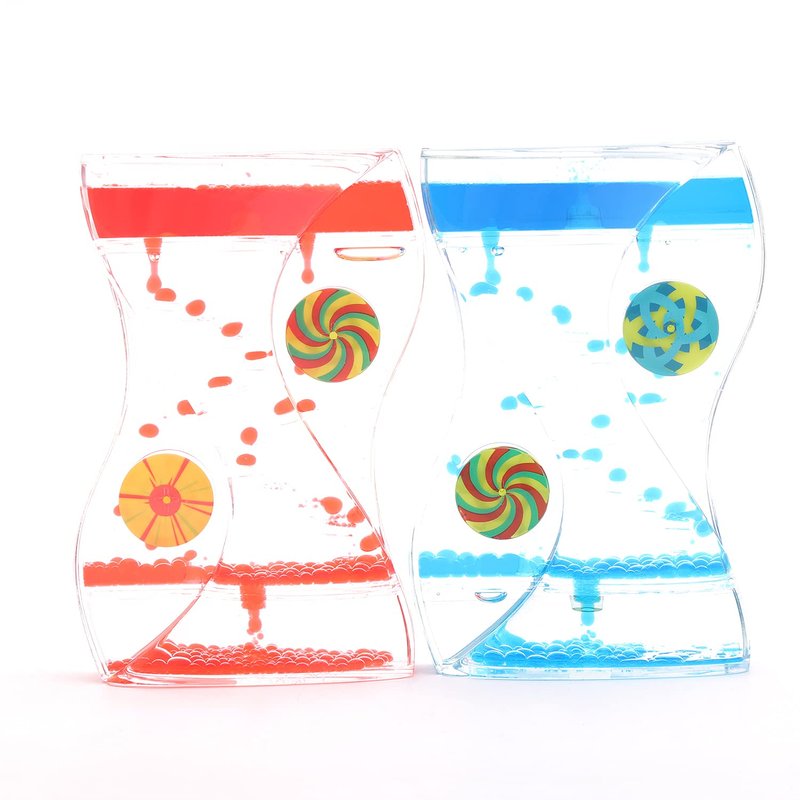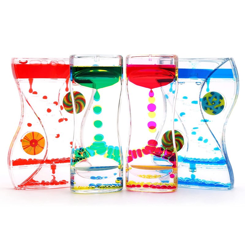 - Colorful Liquid Timer – A small hourglass design, this 4- feature beautiful, flowing colors that drop and move slowly, pushed along with time and gravity for a unique experience.
