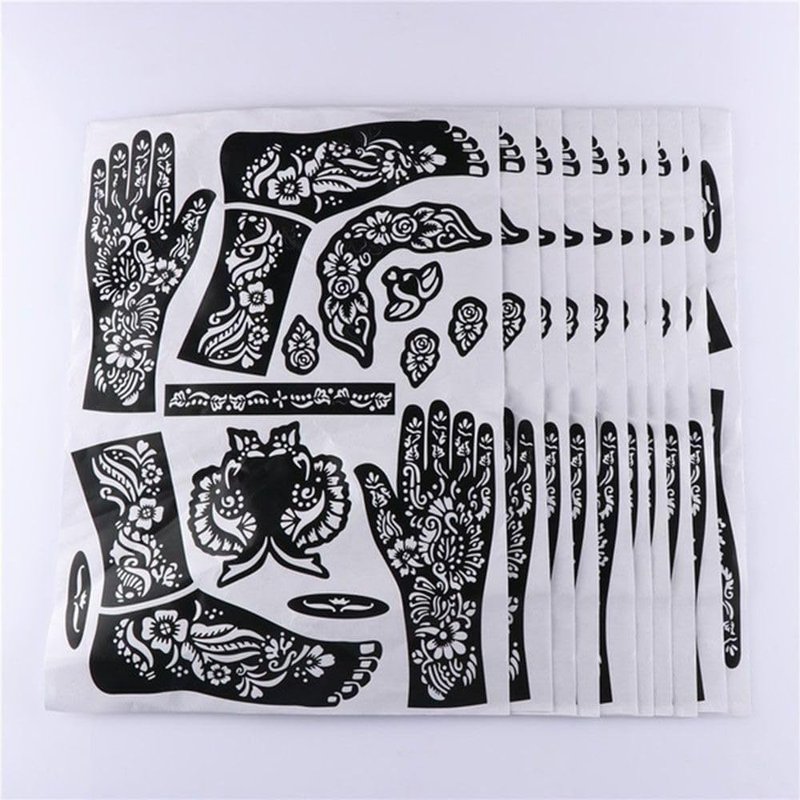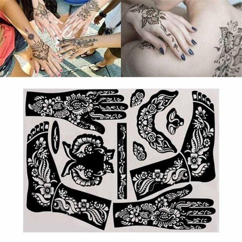 Xinjincang Black Henna Tattoo Kit Stencils,Temporary Reusable Unisex Tattoo Sets, Self-Adhesive Indian Arabian Temporary Tattoo Templates Kit for Body Paint, Temporary Tattoos