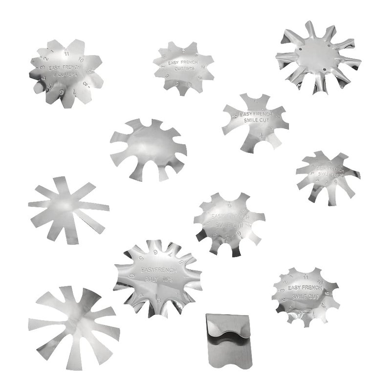 →Most kinds of French smile line cutters help to add straight, curved, oblique, wavy patterns