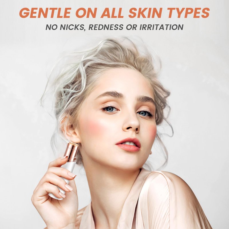 - Safe on all skin types and tones- The facial hair remover has horizontal cutting head with advanced double-deck blade expands the contact area for instant and thorough trimming of unwanted hair on fingers, cheeks, chin, upper lip and arms. Quick hair remover in a few second.