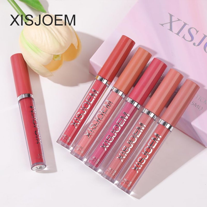 XISJOEM 6pcs Matte Liquid Lipstick Set,Velvet Waterproof Non-Stick Cup Lip Gloss Nude Vegan Liquid Lipsticks Moisturizing Makeup Kit for Women