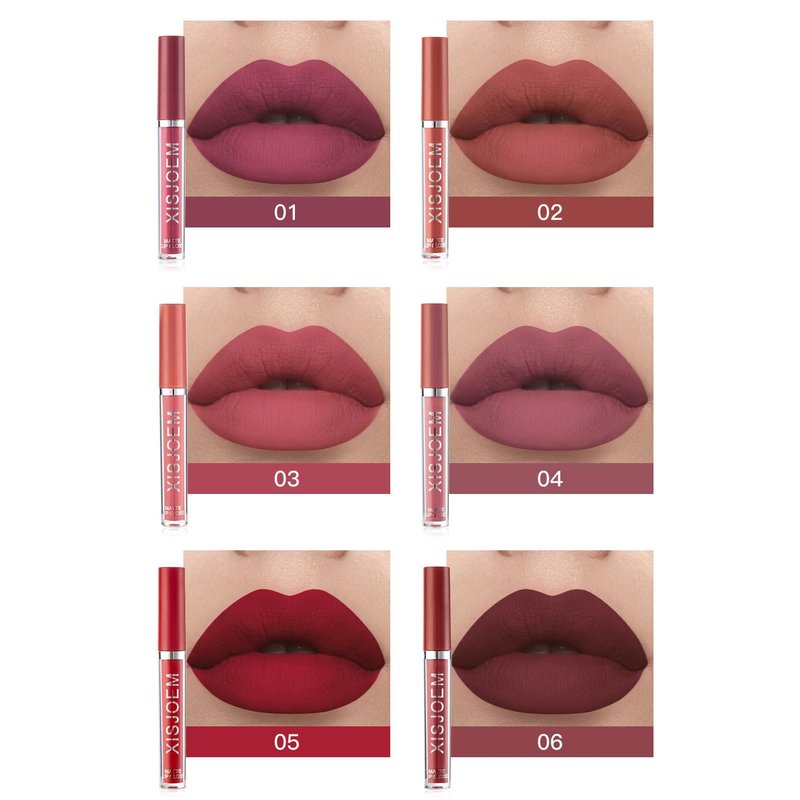 - 6 Colors Lipgloss Set:6 Colors Velvet Liquid Lip Stick Set, Varying shades from of pigmented lip glosses that range to match every mood and outfit; With so many color options in one set, easily experiment to find a new look that works for you