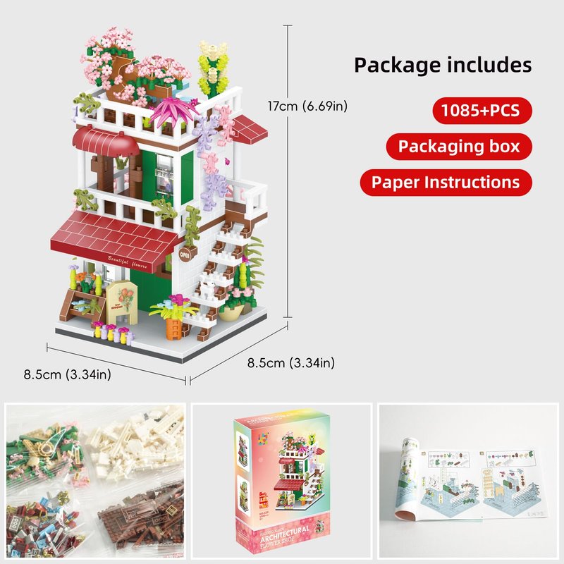 XIU Flower Store Building Block Kits,(1085pcs) Garden House Model Mini Building Block Set, MOC Flower House Block Kit for Women Girls