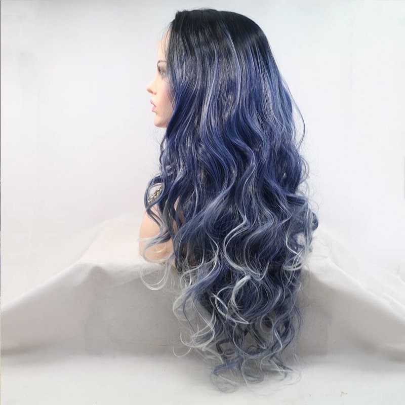 xiweiya Black to Blue Wig Heat Resistant Fiber Hair Long Ombre Blue Wigs with Blonde Tips Mixed Piano Color Middle Part Cheap Wigs 180% Density 13x3 Lace Wig For Women 24inch