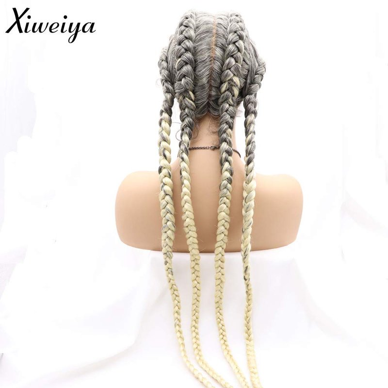 Xiweiya Ombre Blonde Lace Front Wigs Long 36 Inch French Braid Hair Black Women,100% Hand Crochet Box Braids Wig Cap with 4X Twist Braids with Baby Hair Afro Braids Wig