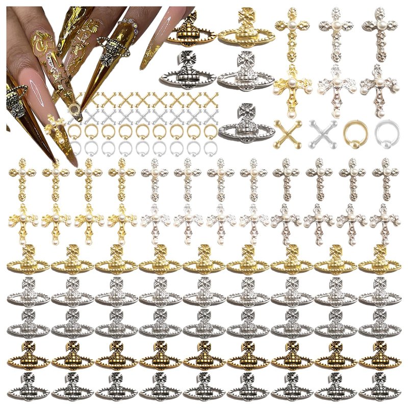 - ✔【High Quality】The planet nail charms are made of alloy, they are hard and not easily break.The cross nail charms decorated with some pearls, exquisite, elegant, noble and fashionable,suitable for experienced manicurists and learners.