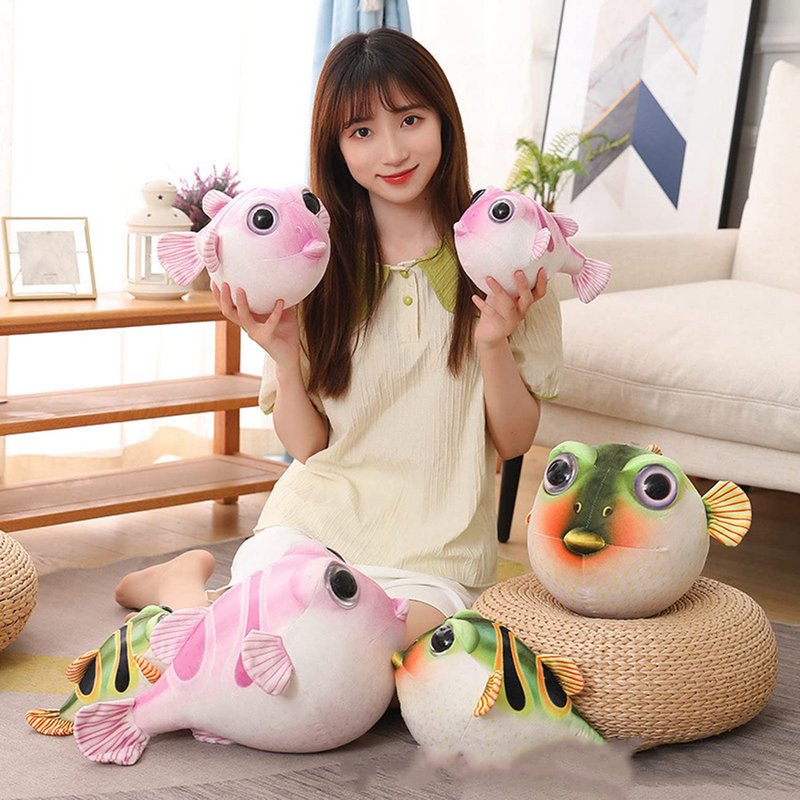 - Plush Puffer Fish: This plush stuffed animal is sewn from high quality polyester soft fabric and filled with high elastic PP cotton plush filling. The stitching is firm, the workmanship is exquisite, and it is not afraid of extrusion.