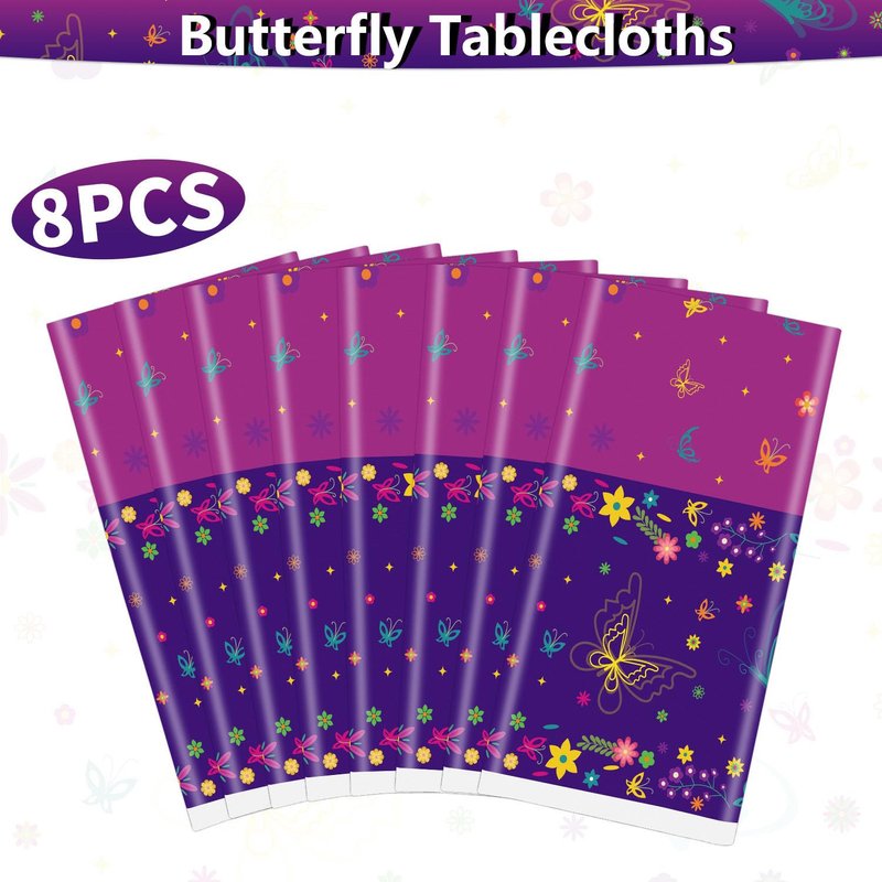 - Package Includes - 8 x movie party tablecloths. This magic butterfly tablecloth combines brightly colored flowers with vivid butterfly elements. The beautiful design and color matching can add color and a lively party atmosphere to your party.