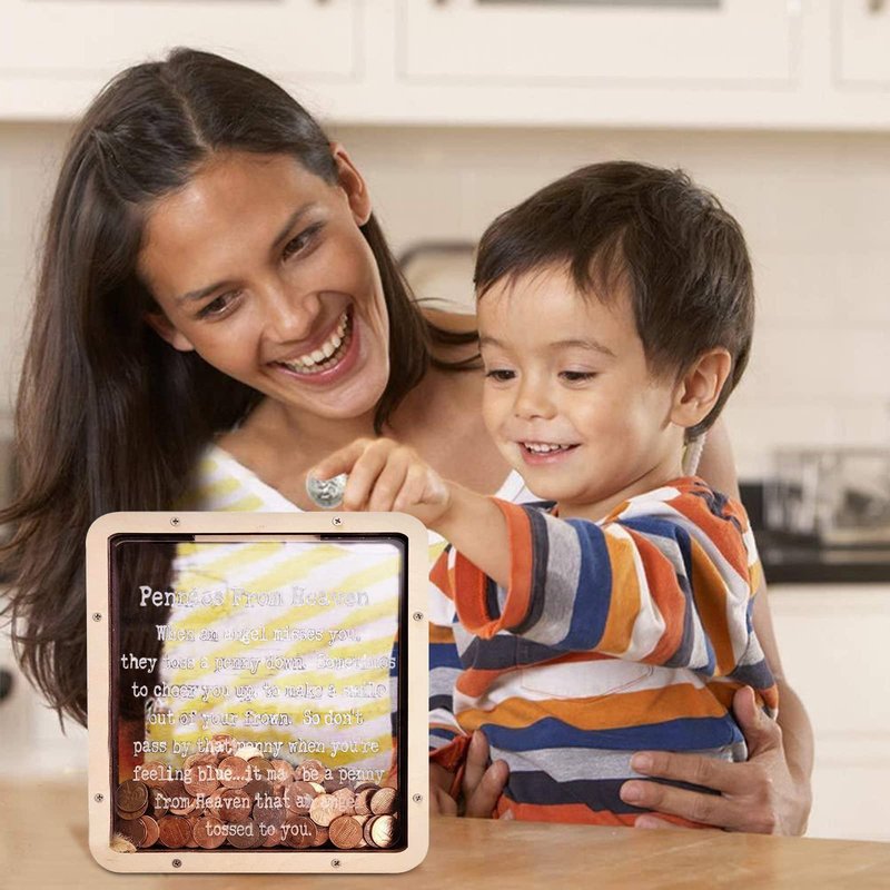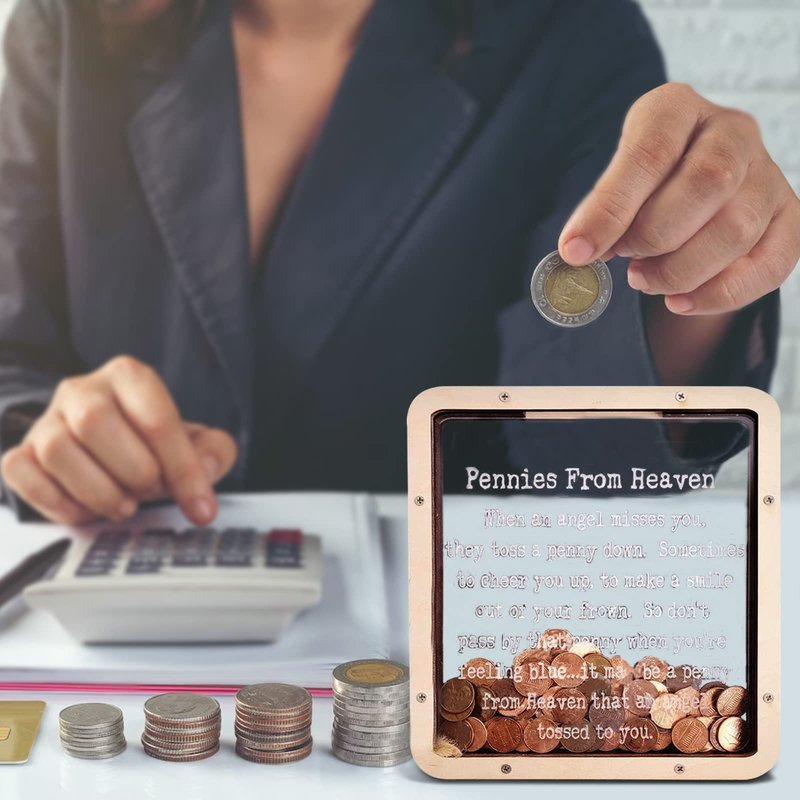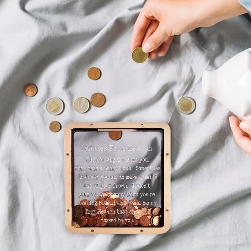 XLAQ Pennies from Heaven Bank Wood Piggy Bank, Personalized Wooden Piggy Bank, Paradise Bank Shadow Coin Bank Piggy Bank Memorial NO NO