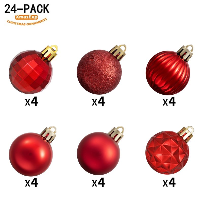XmasExp 24ct Christmas Ball Ornaments Shatterproof Christmas Ornaments Set Decorations for Xmas Tree Balls 40mm/1.57" (1.57'', Red)