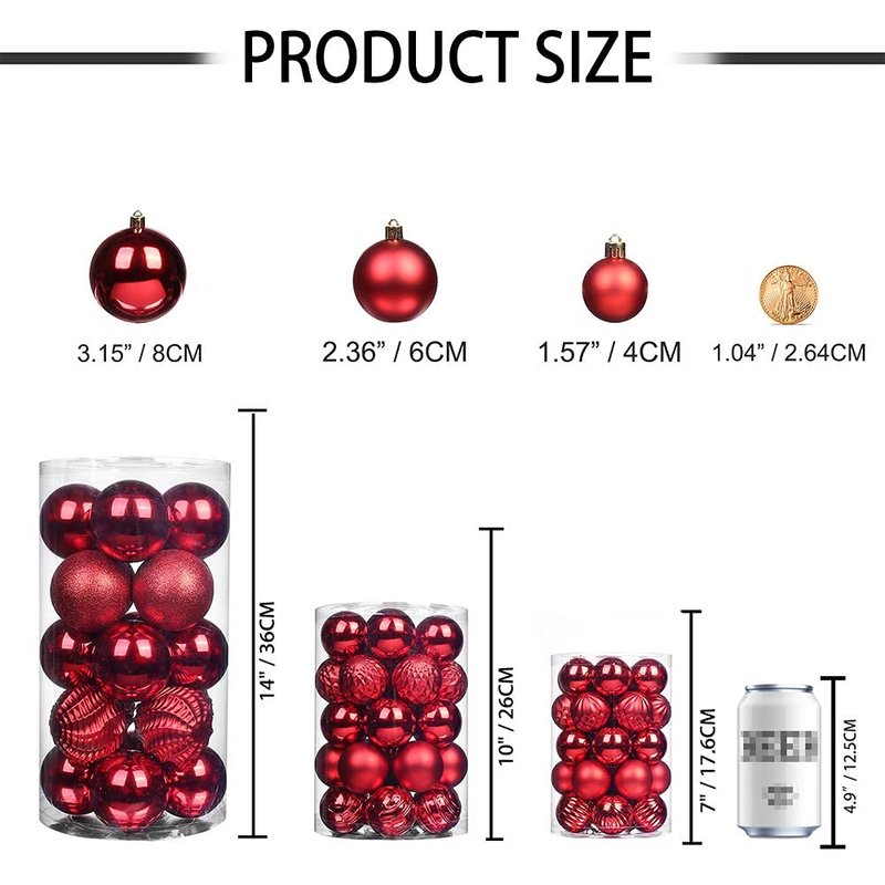 - KID&PET FRIENDLY - All Christmas ball ornaments are made of Plastic. Even they are broken, debris will not hurt your children or pets comparing to fragments of glass.It is safe around kids and pets.