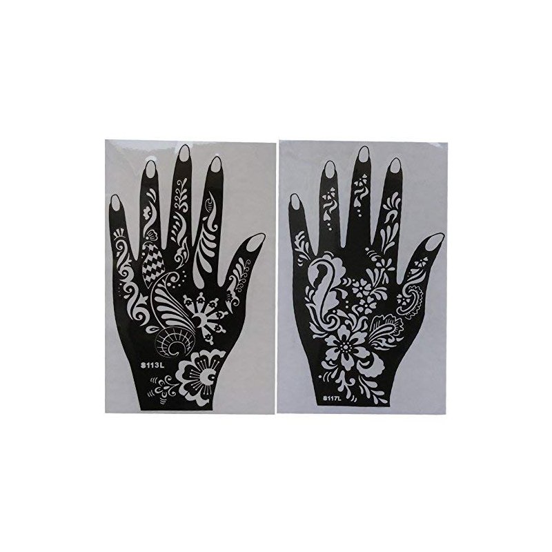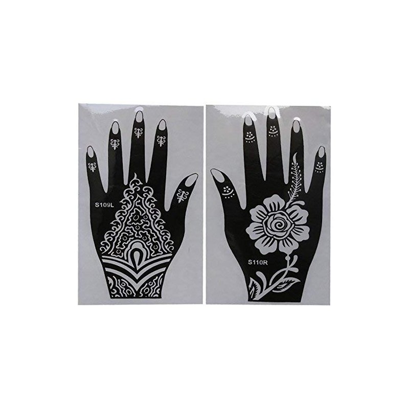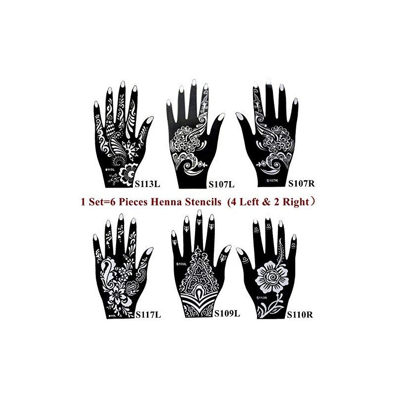 - Package: 6 Sheets tattoo stencils. 3 layers PVC Henna tattoo stencils, Washable and Non-Toxic.,Design shown in the picture. Ink is not included