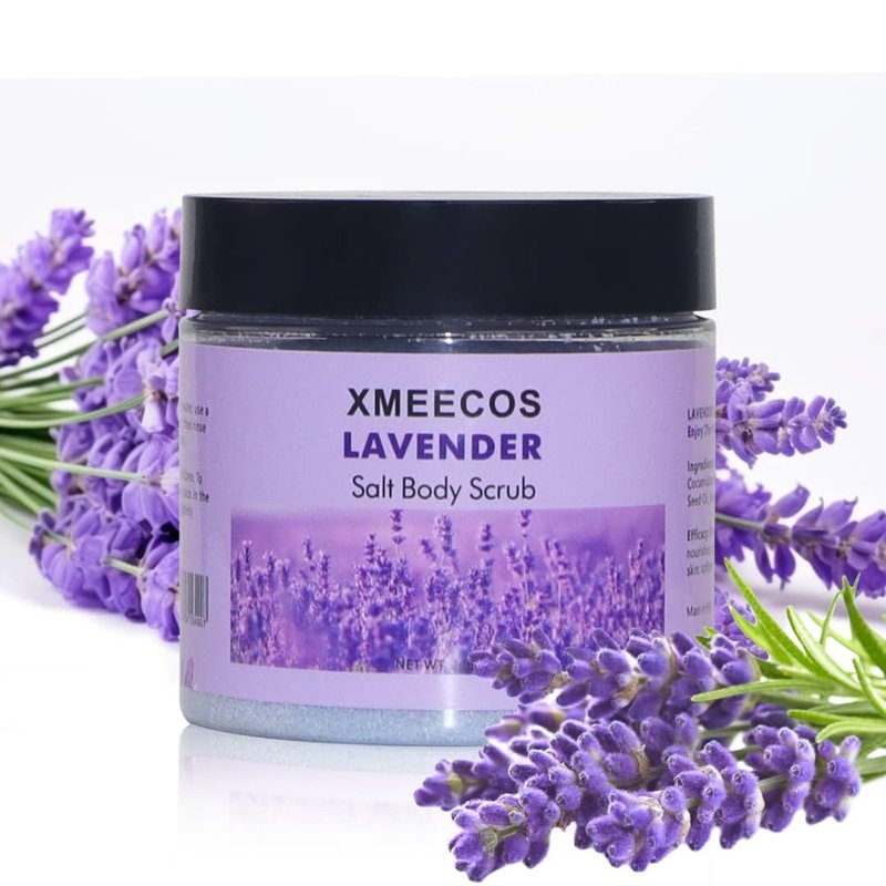 XMEECOS Lavender Salt Body Scrub Skin Cleaser With Natural Salt Lavender Petals Moisturizer| Exfoliating| Bath Salt| Cruelty-free (Lavender)