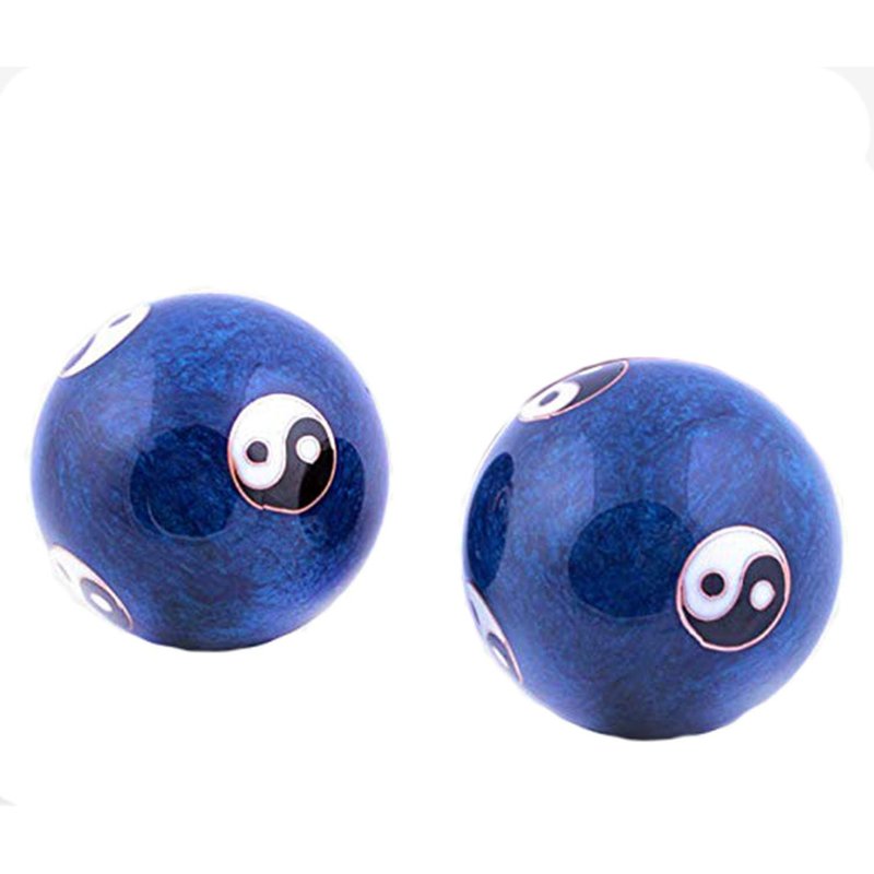 XMHF Cloisonne Yin-Yang Chinese Meditation Baoding Healthy Exercise Ball Blue 2Pcs