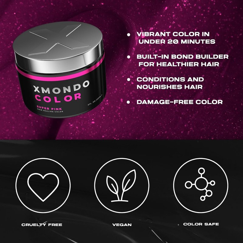 XMONDO Hair Color Super Pink Hair Healing Semi Permanent Color | Vegan Formula with Hyaluronic Acid to Retain Moisture, Vegetable Proteins to Revitalize, and Bond Boosting Technology, 8 Fl Oz 1-Pack