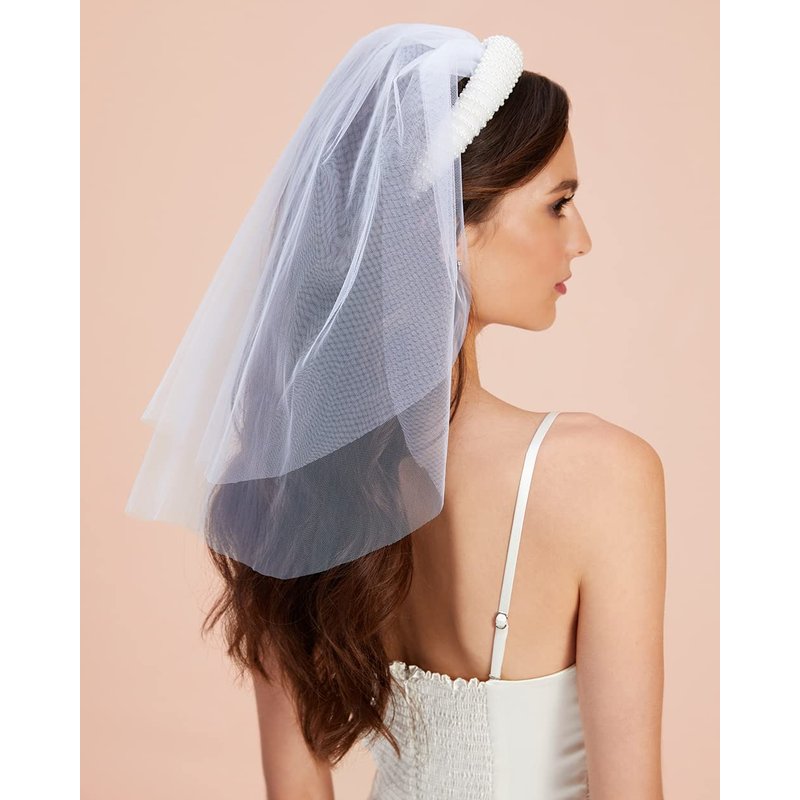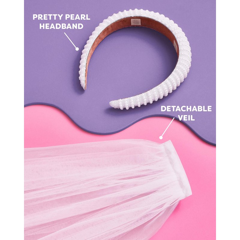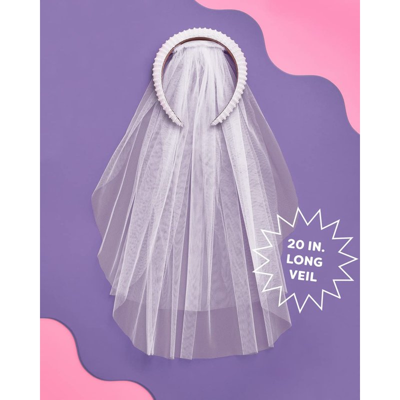 - Accessorize for your bach party like you mean it with our pearl headband + detachable veil!