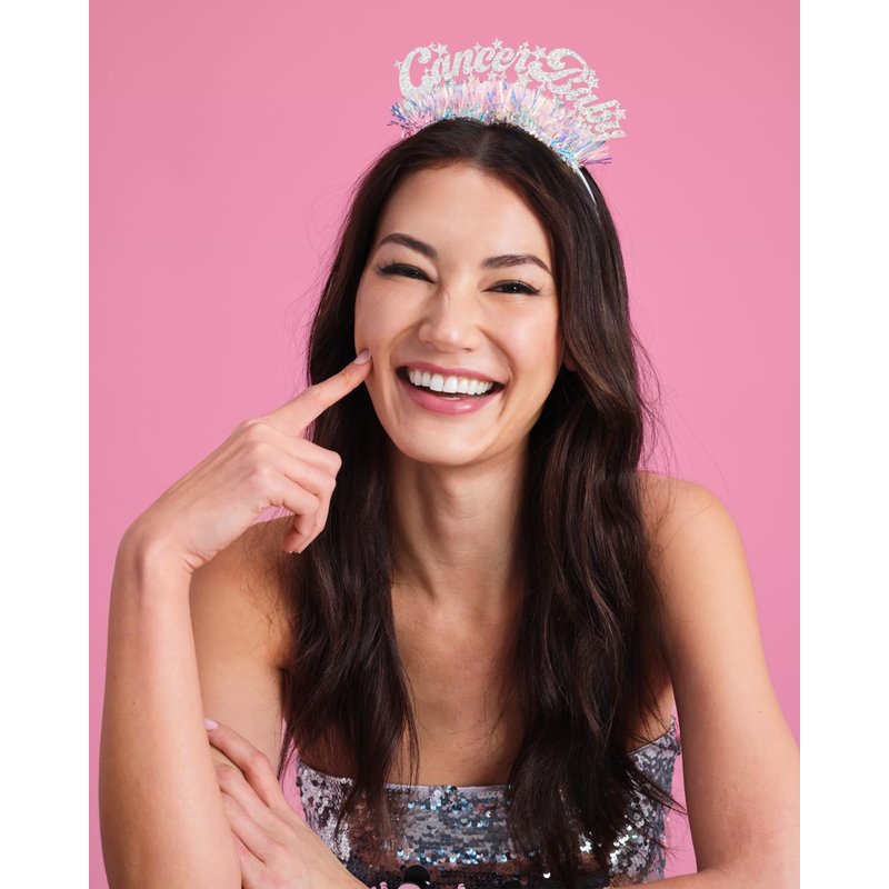 Say hello to your new fav headband! Our headband features a "Cancer Baby" logo made out of the prettiest glitter fabric + iridescent fringe, and will fit anyone who wears it - which means you're going to be looking bomb for your party! Get ready to shine bright like a diamond while celebrating your birthday! Our headbands are made to fit any adult and child! This headband is truly the ultimate party accessory!