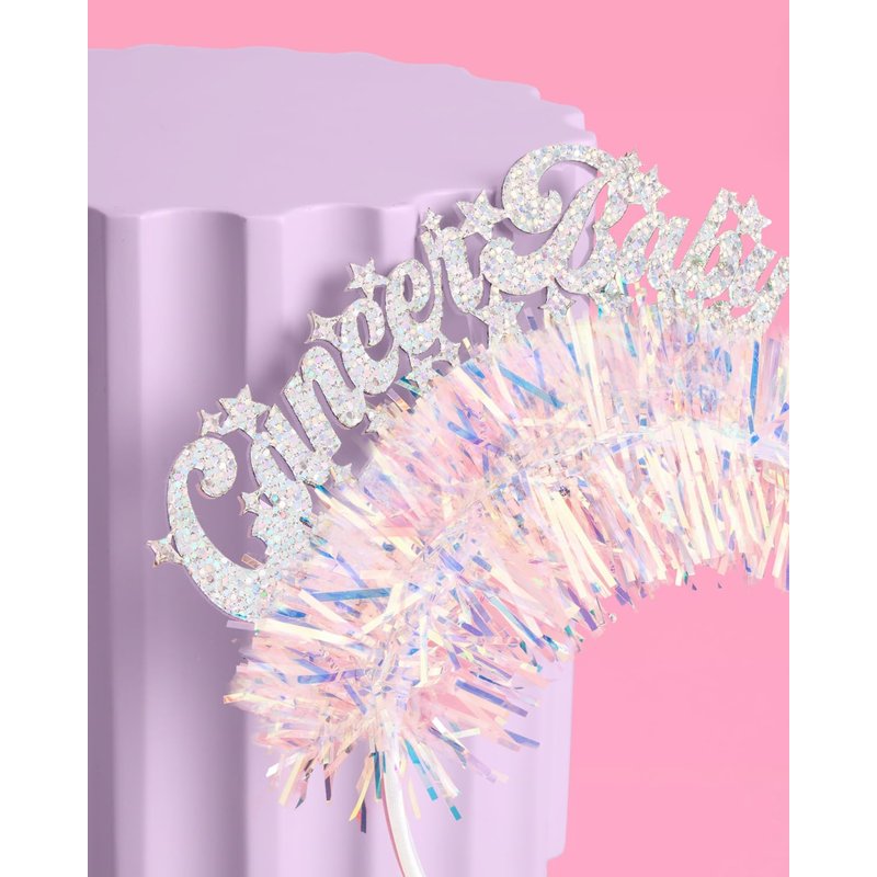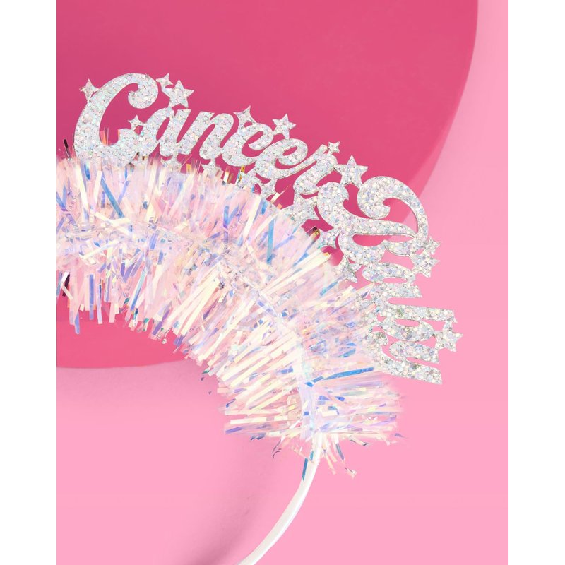 - Foil Details: each headband features a "Cancer Baby" logo made out of the prettiest glitter fabric + iridescent fringe.