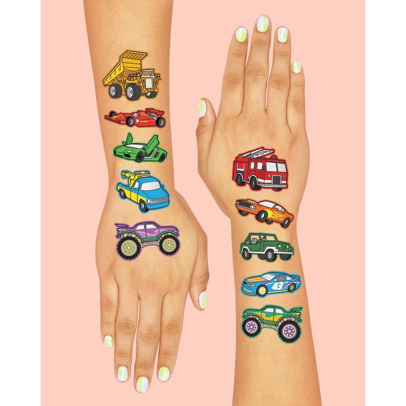 - Tat up: with foil designs like race cars, monster trucks, muscle cars + more. Guaranteed to be a favorite by all party guests!