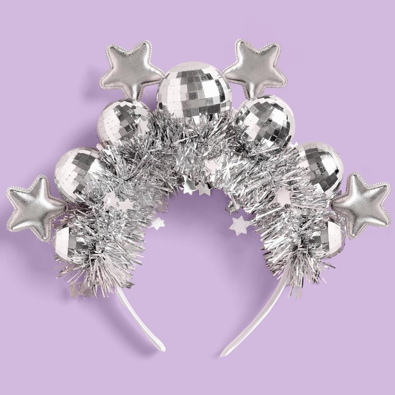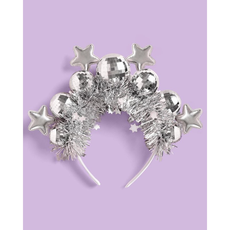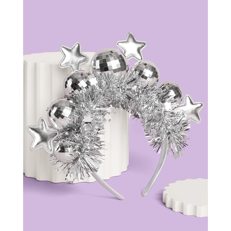 xo, Fetti Disco Balls + Stars Headband - New Year's Eve Hair Accessory, Holiday Party Favor, Boogie Birthday Party Decorations