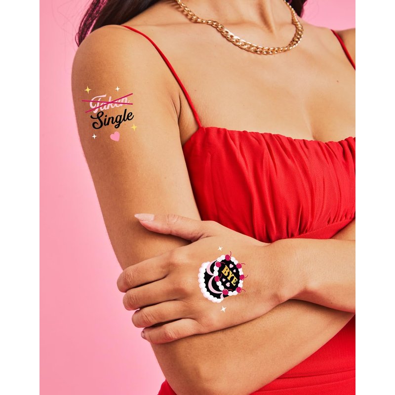- Cheers: our fun temporary tattoos have been put through rigorous party testing and are 100% guaranteed to last day into night - the perfect newly single party decorations!