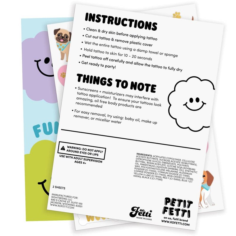 - Woof! Our dog party tattoos are the purrfect goodie bag favor, party decoration, birthday surprise + stay at home activity :)