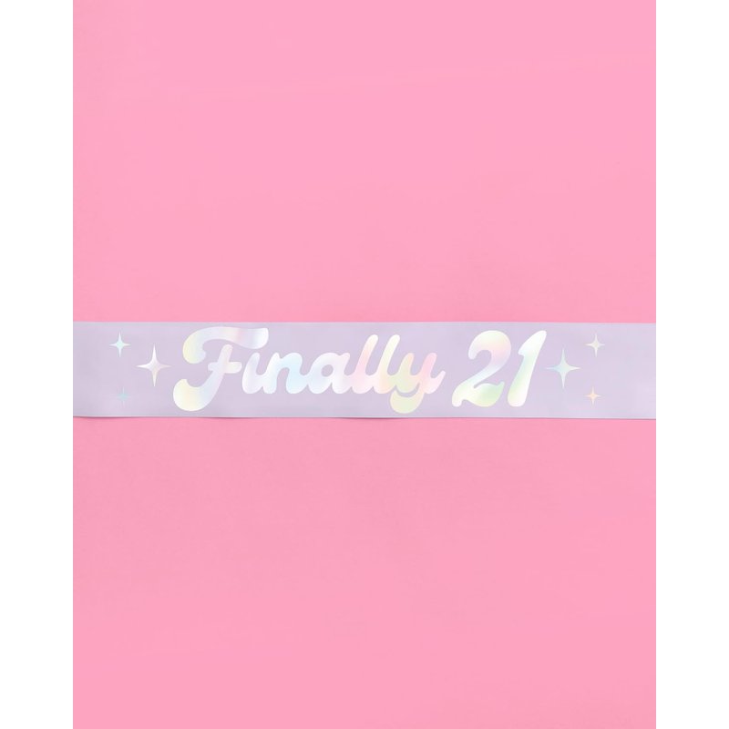 - HBD: Our purple silk + holographic foil "Finally 21" sash is the party addition you've been looking for + a guaranteed hit!