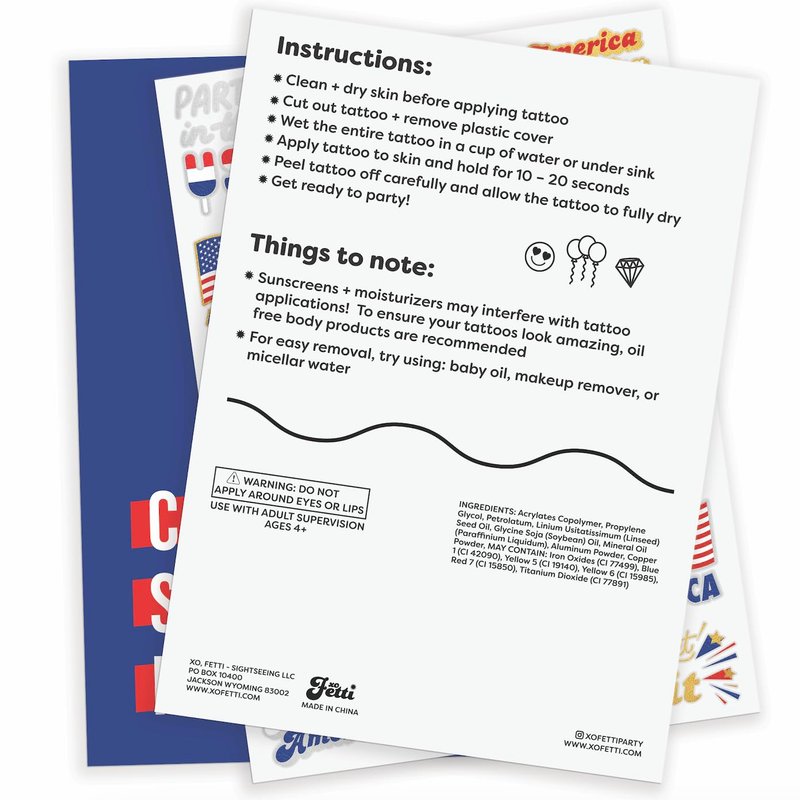 xo, Fetti Fourth of July Decorations Tattoos - 34 styles | Red White and Blue Party Supplies, 4th of July, USA Flag, Memorial Day, Independence Day, Labor Day