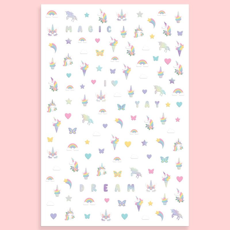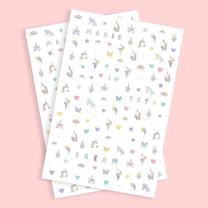 - Nailed It!: we love nail stickers just as much as you so we gave them a unicorn re-do :) each set comes with 4 sheets and 131 nail designs on each sheet! That's over 500 nail stickers for you and your bffs!