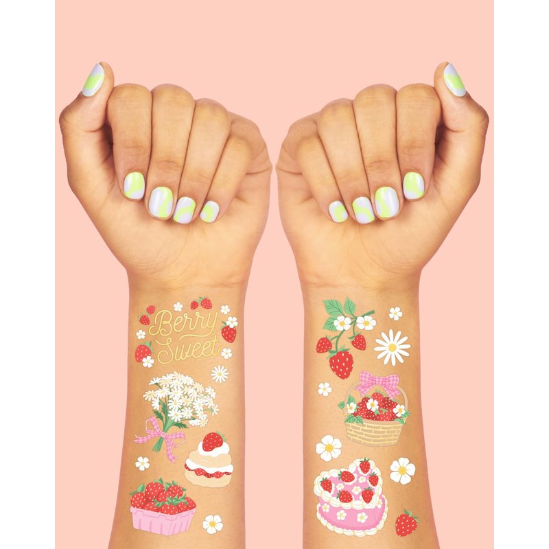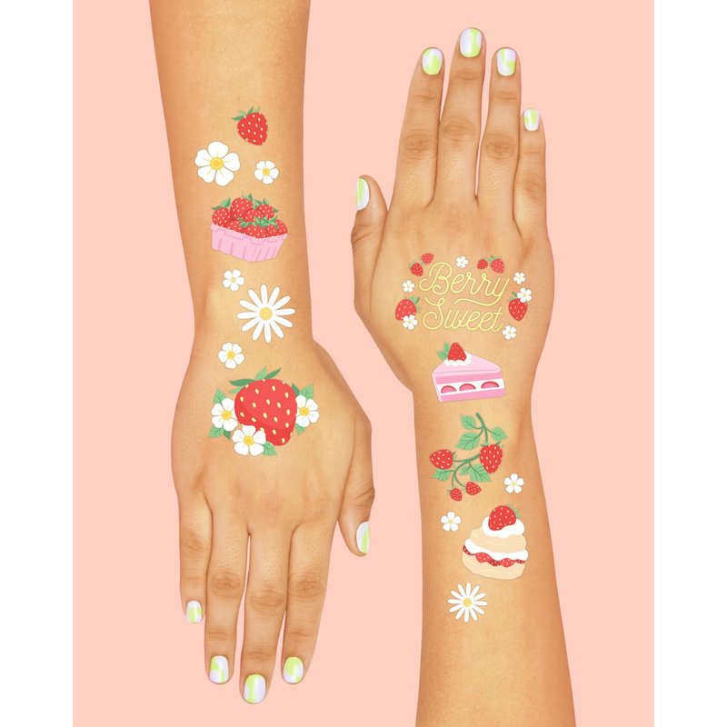 xo, Fetti Strawberry Party Temporary Tattoos - 60 Styles | Dessert Birthday Party Decorations, Berry Sweet Cute Accessory, Garden Tea Baby Shower Theme Favor, Summer Home Activity, Easter Basket