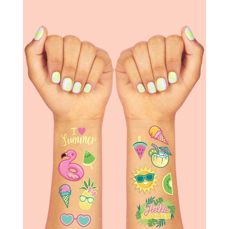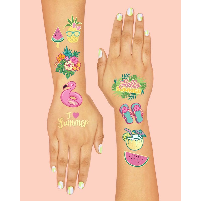 xo, Fetti Summer Pool Party Temporary Tattoos for Kids - Glitter styles | Birthday Party Supplies, Beach Party Favors + Tropical Decor