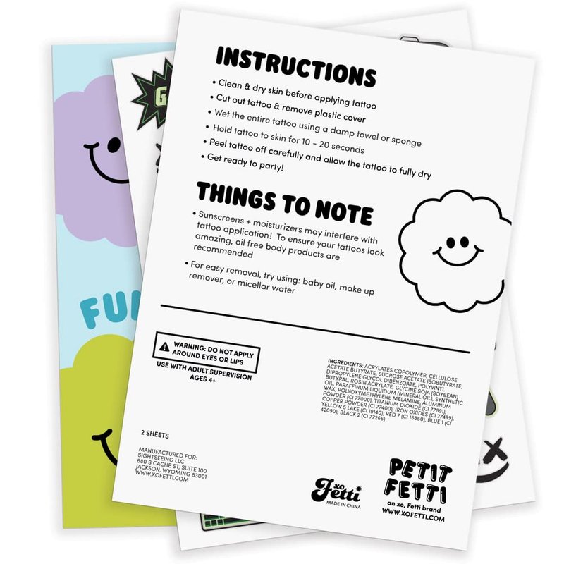 - Easy to apply: Place tattoo on clean + dry skin > Lightly dab the tattoo with damp paper towel > Remove paper, allow tattoo to dry and enjoy! Instructions included on back of each sheet :)
