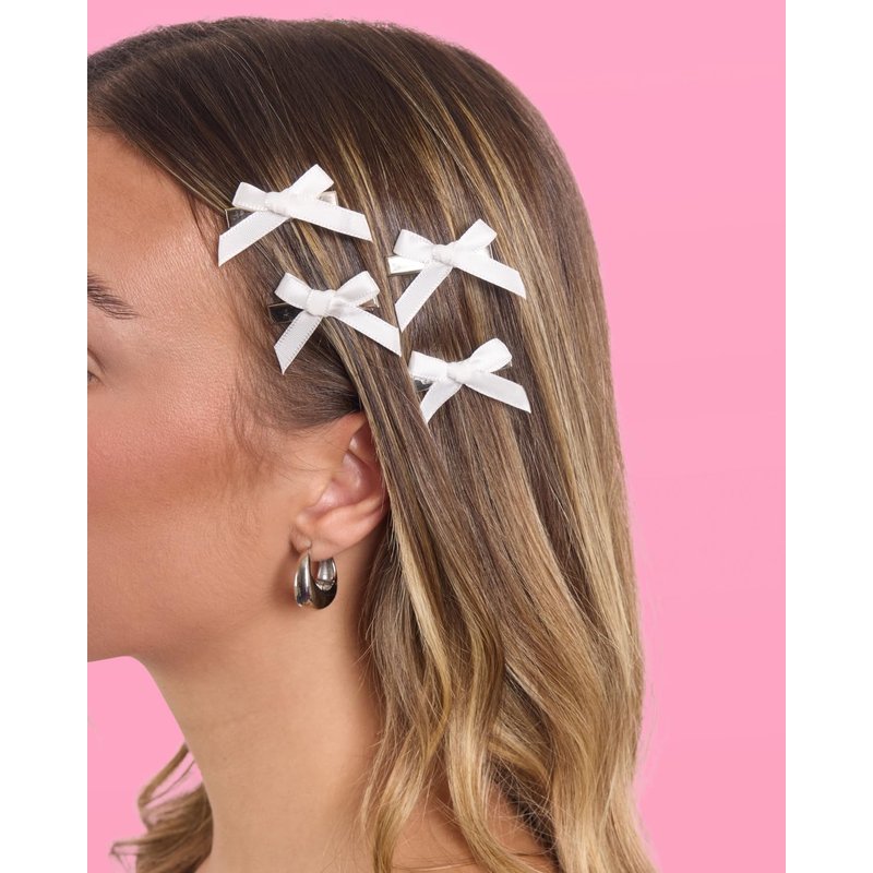 xo, Fetti White Bachelorette Mini Hair Bow Set - 8 pcs. | Bridal Party Accessory, Bride to Be Hair Tie Favor, Wedding Shower Headwear, Bridesmaid Gift, Bach Supplies, Engagement Outfit