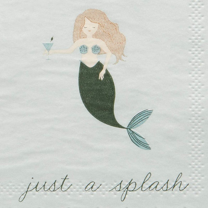 X&O Paper Goods Blue 'Just a Splash' Mermaid Beverage and Cocktail Napkins, 20pc, 5" W x 5" L
