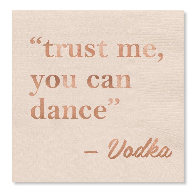 - FUN DESIGN - these fun beverage napkins feature the phrase 'Trust Me, You Can Dance -Vodka' and are a great addition to parties, gatherings and other social events