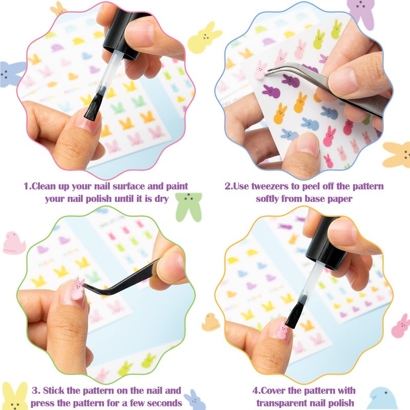 - Materials & Design: Nail stickers are made of quality PVC material, safe, non-toxic, durable and not easy to fall off. The self-adhesive nail stickers are designed with different styles of bunny patterns. Girls can hardly resist candy-colored nail stickers!