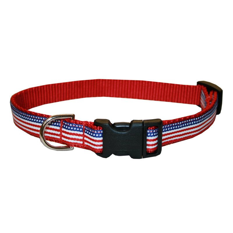 - Small American Flag Dog Harness: 5/8" wide, Adjusts 15-21" Made in USA.