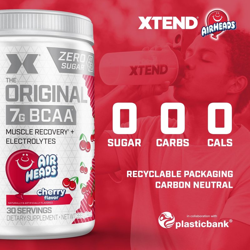 Xtend XTEND Original BCAA Powder Airheads Candy Flavor, 7g BCAA and 2.5g L-Glutamine, Sugar Free Post Workout Muscle Recovery Drink with Amino Acids for Men & Women, 30 Servings