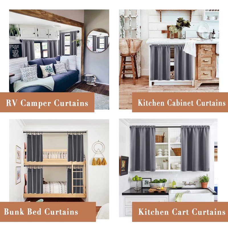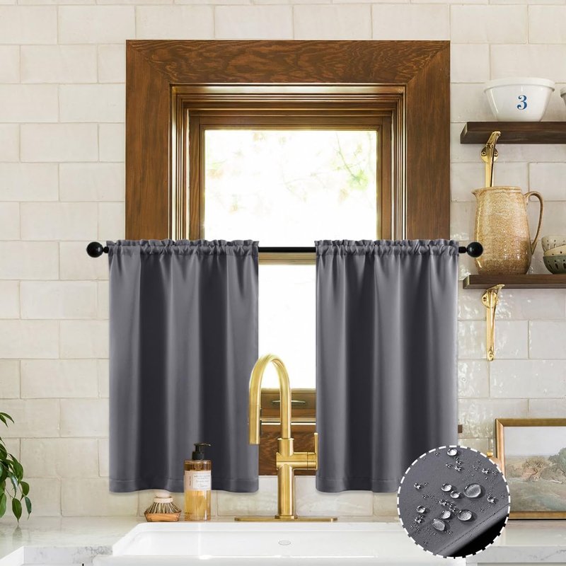 XTMYI Small Window Curtains for Bathroom,Waterproof Short Blackout Kitchen Curtains 24 Inch Length Sets for Cafe,Grey