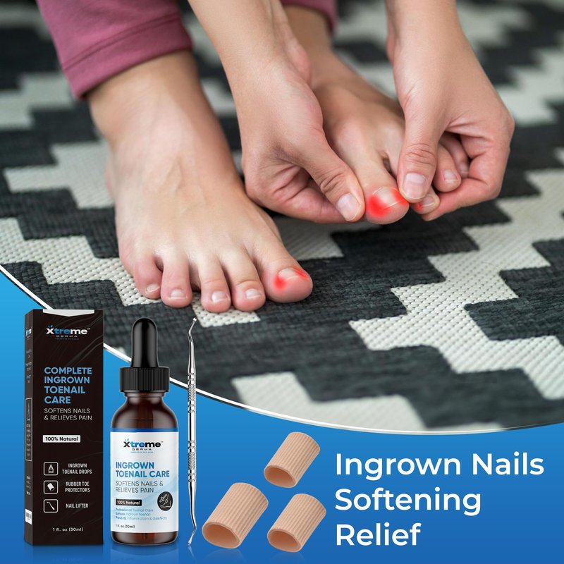 Xtreme Derma Ingrown Toenail Treatment - 3 in 1 Ingrown Toenail Removal Kit + Pain Relief - Ingrown Toenail Drops + Toe Protectors + Nail Lifter