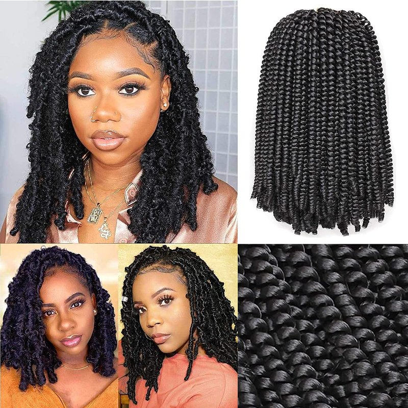 Xtrend 12 Inch 2 Packs Spring Twist Hair For Butterfly Faux Locks And Invisible Locs Short Crochet Braids Hair Synthetic Spring Curl Hair Extension For Women (1B#)